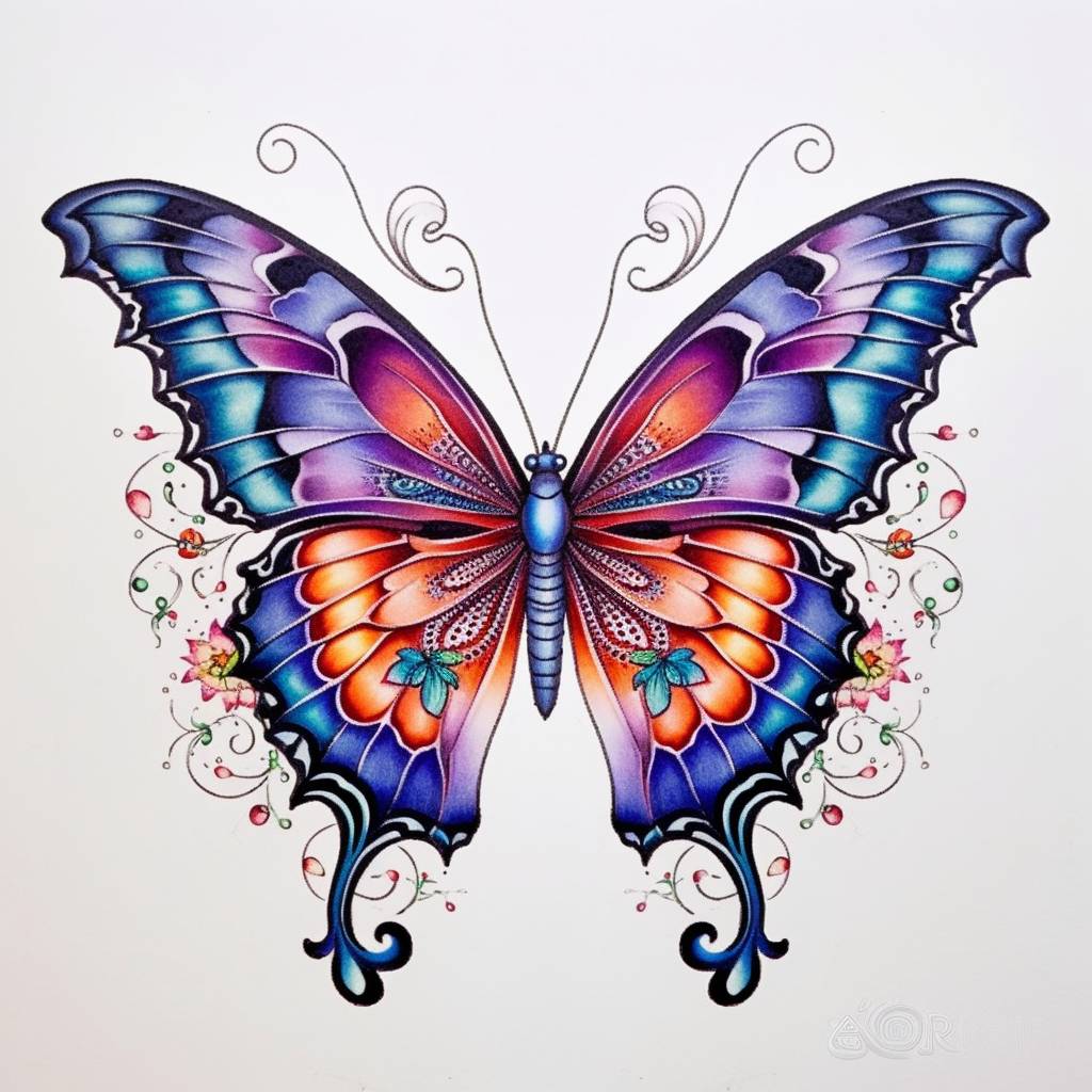 PRINT Erkunden Sie das realistische Schmetterlings-Tattoo auf unserer Seite. Dieses Design zeigt einen großen, fotorealistischen Schmetterling mit detaillierten Flügeln in kontrastierenden Farben. Die Antenne und der Körper sind aufwendig gestaltet und ahmen einen echten Schmetterling nach. Das Tattoo ist von einem mystischen Dunst umgeben, der eine künstlerische Note hinzufügt. Das Design befindet sich auf einem weißen Hintergrund, um die Farben und Details des Tattoos hervorzuheben. Dieses Tattoo ist ideal für diejenigen, die eine große Fläche auf ihrem Rücken mit einem Stück, das Kunstfertigkeit und Realismus kombiniert, bedecken möchten.